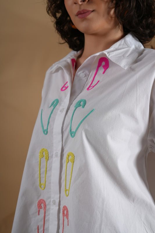 Comfort Fit Embroidered Shirt- Safety Pin White
