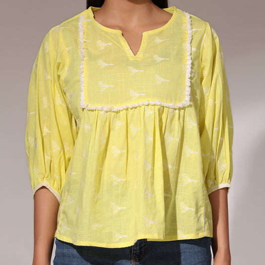 Embroidered Top- Birds of Paradise Lime