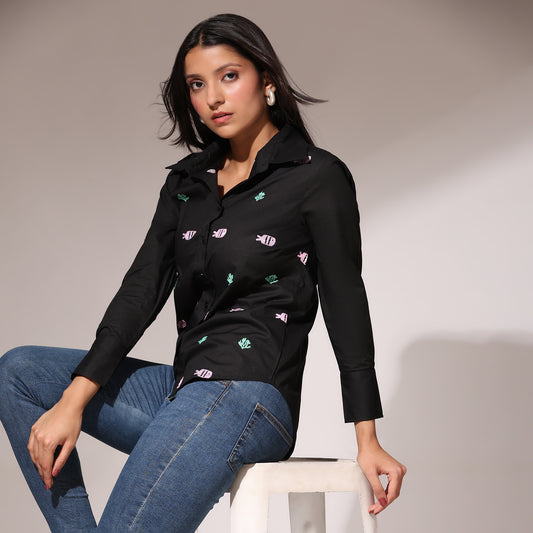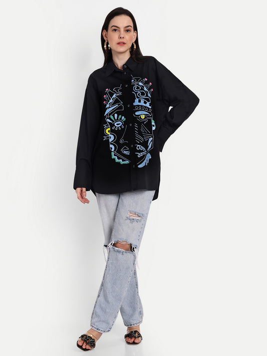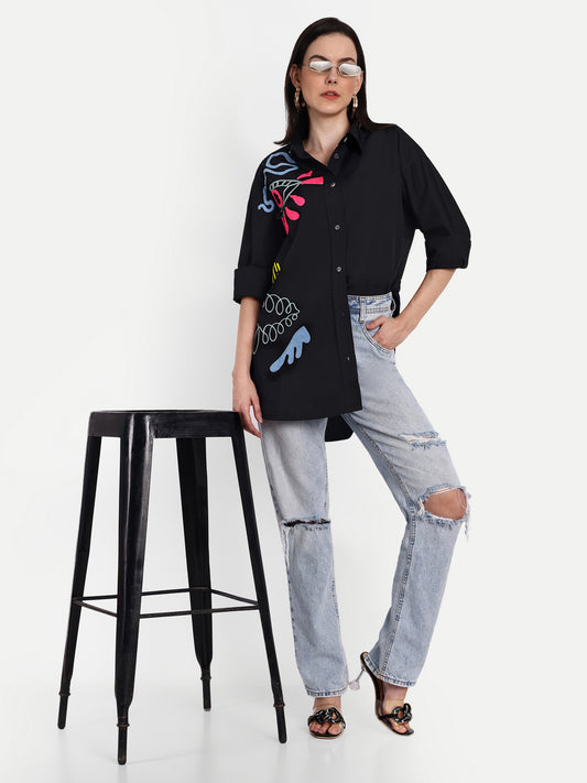 Oversized Embroidered Shirt- Samara Black