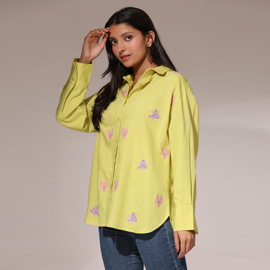 Oversized Embroidered Shirt- Lobster Yellow